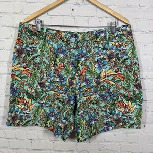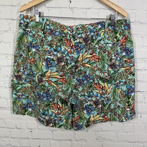Talbots Relaxed Chino Women Size 16 Floral Linen Blend Tropical Resort Shorts