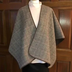 Brand new, never worn Talbots reversible ruana. The color is a brown plaid and the reverse side is dark brown.