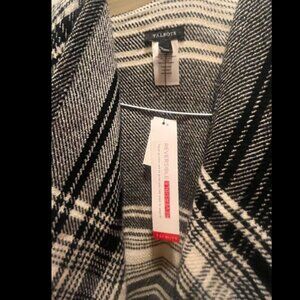 Talbots Reversible Shawl NEW - Plaid Wrap with Fringe - Black & White Pattern
