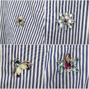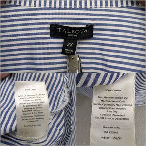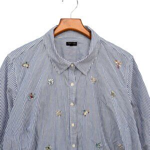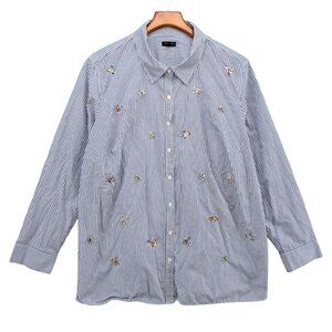 Talbots Rhinestone Button Front Shirt Womens Blue Striped Long Sleeve Top Sz 2X