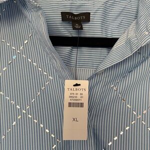Blue striped dress shirt with rhinestone pattern. Never worn, NWT. 100% cotton.