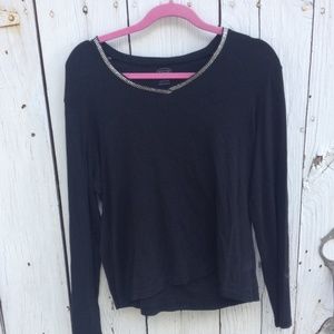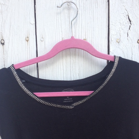 Long sleeve black shirt with cute rhinestone neck. Slight v-neck. Says X-large but fits more like a large