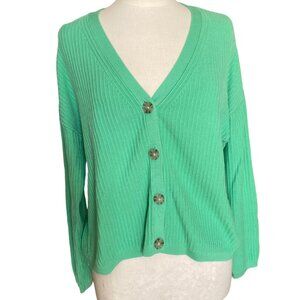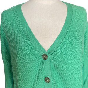 Talbots Rib Knit Grandpacore Cardigan Sweater Green Button Preppy Academia-XL