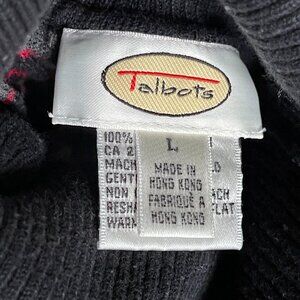 Gorgeous gradient colors rows of thin stripe and classy squares-- black, gray, cream and red! Black fold-over neck.