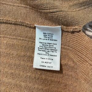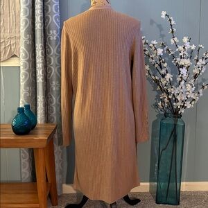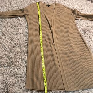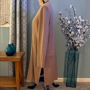 Talbots Ribbed Duster Cardigan. Beautiful camel color. Gold buttons on wrists. Open front. Vertical ribbed fabric. Side slits. Excellent condition. Size medium.