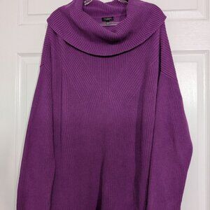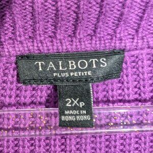 Talbots Ribbed Sweater Womens Petite Size 2X Purple Knit Cowl Neck Long Sleeve