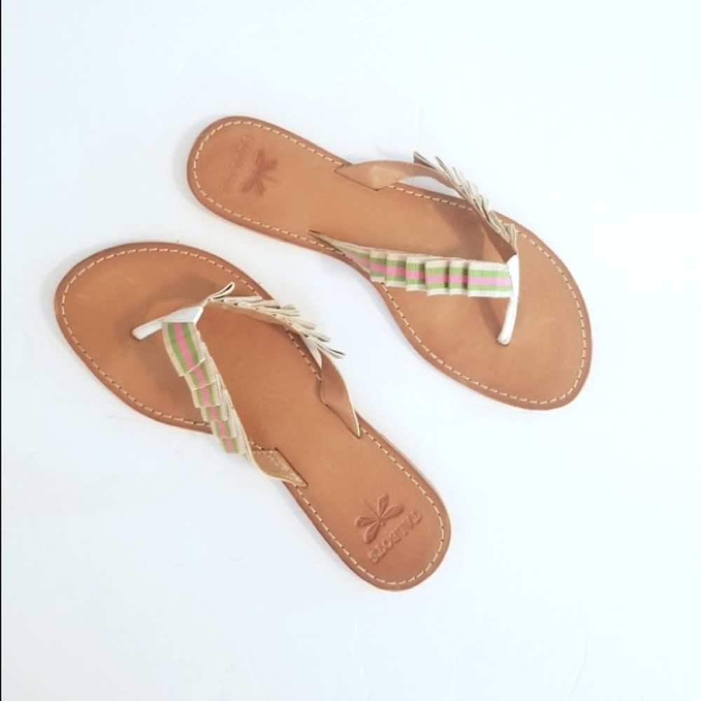 In great condition! Size 7 with pink, green and tan ribbon embellishments.