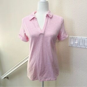 Talbots Roll Cuff Johnny Collar Striped Pullover Polo Pink White stripe size M