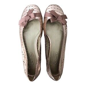 Talbots Rose Gold Pink Metallic Perforated Leather Ballet Flats with Bow Size 7B