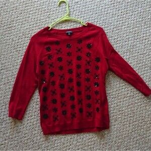 Talbots Ruby Red Sweater with Snowflakes Embellishments size S