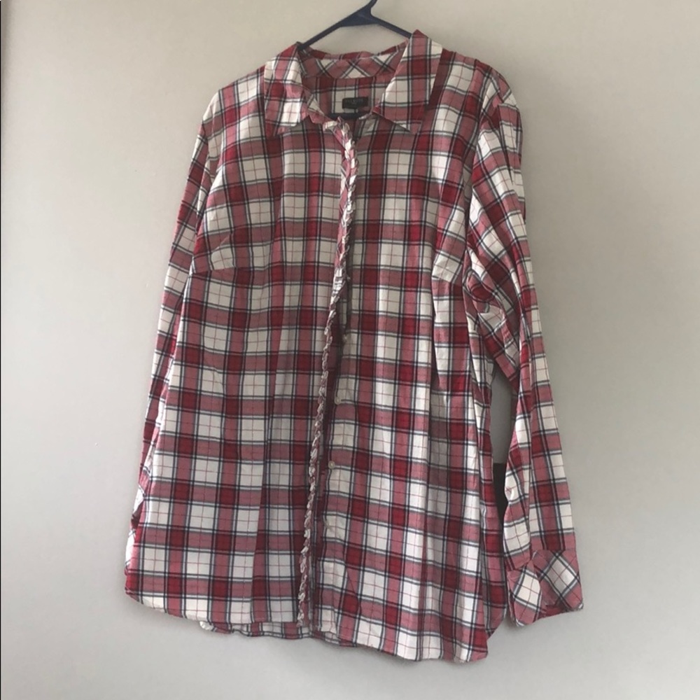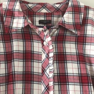 Perfect bottom down for fall and winter with a ruffle detail at the placket and sparkly thread.