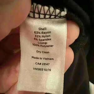 Material: 63% Rayon, 32% Nylon, 5% Spandex