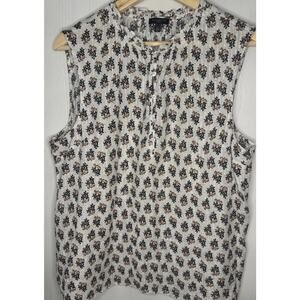 Talbots Ruffle High Neck Sleeveless Floral Silver Metallic Blouse Women Size PXL
