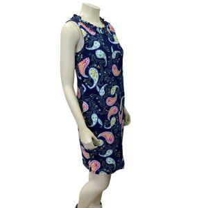 Talbots Ruffle Neck Sleeveless Paisley Print Dress Womens S Pet