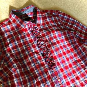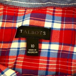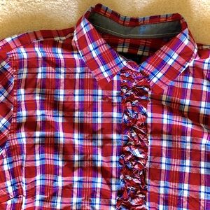 Talbots Ruffle Plaid Top Blue & Red