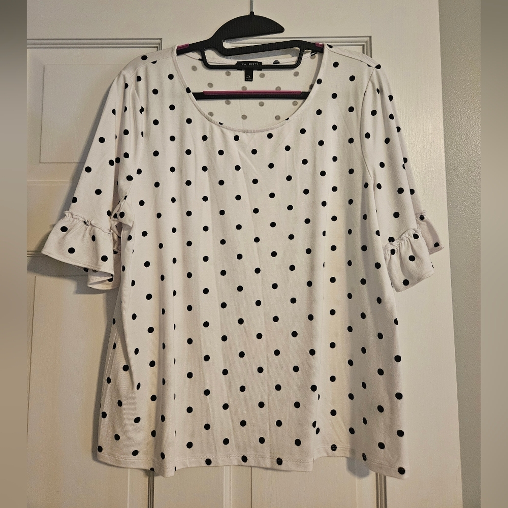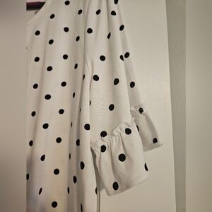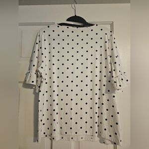 Polkadot top from Talbots with ruffle-sleeve detail. Size: LP. In EUC. Smoke-free, cat-friendly home.