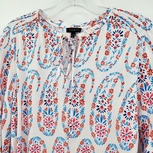 Talbots Ruffle Tie Neck Floral Long Sleeve Blouse, Size M.