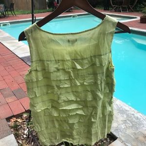 Talbots ruffle top and a nice green shade size 2. Pet free smoke free home. 100% cotton. Machine wash cold gentle cycle.