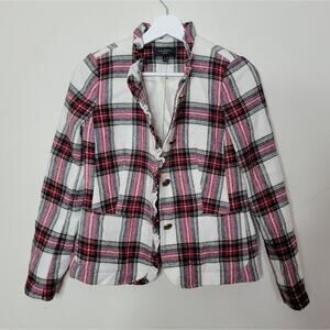 Talbots Ruffle Trim Shetland Holiday Plaid Jacket Petite 2P