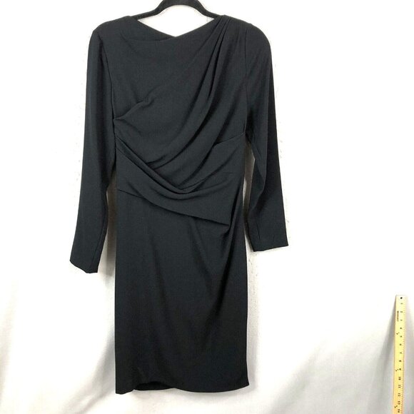 Talbots Runhof Dress Womens 12 Black Ruched Long Sleeve Event Occasion Formal