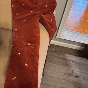 Brand new just no tags Rust-colored pants with playful embroidered fox designs. Stylish and unique.