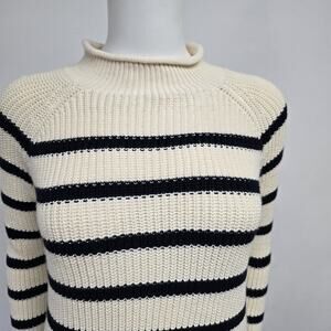 Talbots women's cream with navy stripe, medium-knit, roll-neck sweater