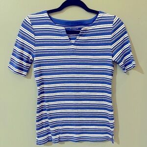Talbots SPLIT NECK TEE blue and white stripe petite EUC