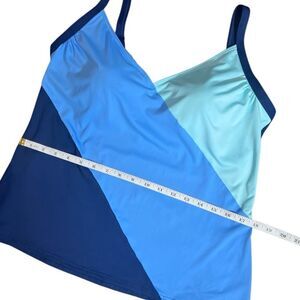 Talbots SUN OCEAN SAND COLORBLOCK V-NECK TANKINI Top Size 16