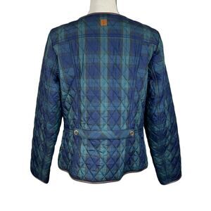 Talbots SZ 12 Full-Zip Jacket Quilted Plaid Pockets Lined Long Sleeve Navy Blue