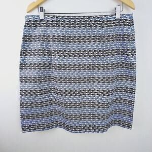 Talbots SZ 14P Novelty Fish Print Cotton Spandex Skirt White Blue Black
