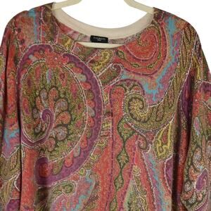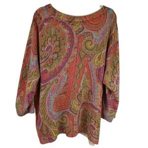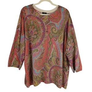 Talbots SZ 3X 100% Cashmere Colorful Paisley Pullover Sweater 3/4 Sleeves