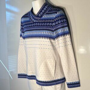 Talbots SZ M Blue fair isle soft sweatshirt sweater Comfy Preppy Snow Holiday
