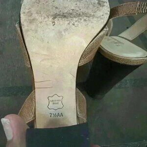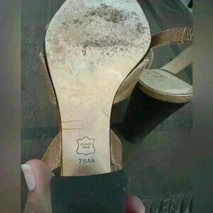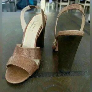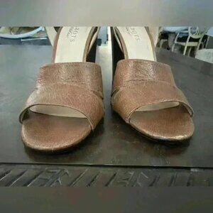 Talbots ,Saddle Brown, Pebble Leather, Open Toe Pumps, Wood 4" Heels, size 7.5