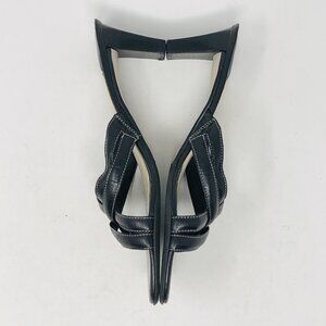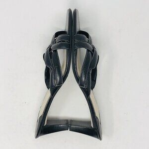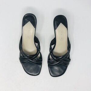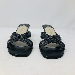 Talbots Sandal Womens 6B Black Leather Strappy Mid Kitten Heel Open Toe Slip On