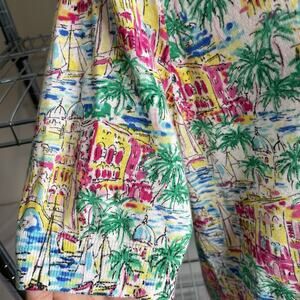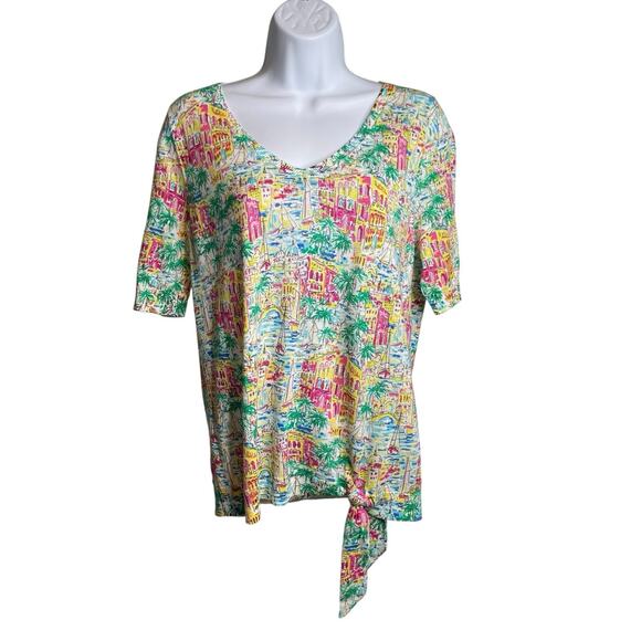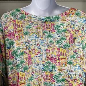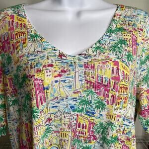 Talbots Santorini Greece V Neck Casual Top Size M Petite Euro Summer Art To Wear