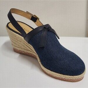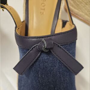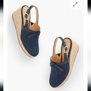 Talbots Saylor Bow Blue Denim Espadrille Wedge Sandals 10½