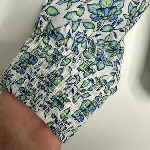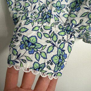 Talbots Scallop Lace Trim Top Blooming Daffodils Sz XL Petite Button Up Cotton