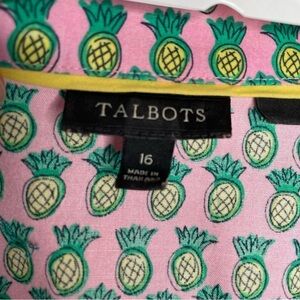 Talbots Scallop Shirt Dancing Pineapple Novelty Print Non Iron Luau Tiki 16