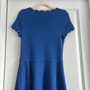 Talbots Scalloped Knit Sweater Dress Sz M Cobalt Blue Fit & Flare Modest A Line