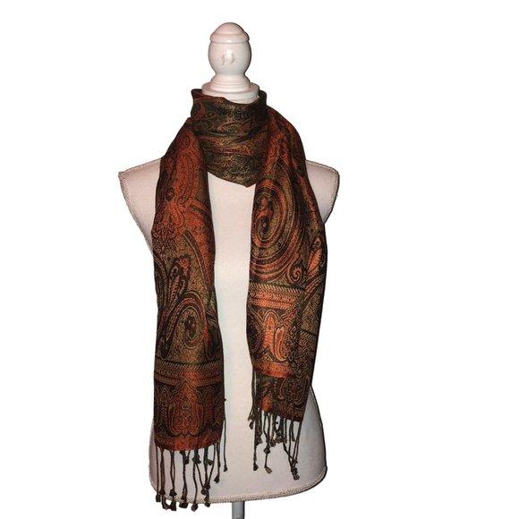 Talbots Scarf Used Large Oranges Greens *No Material Tag