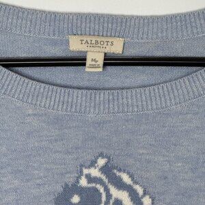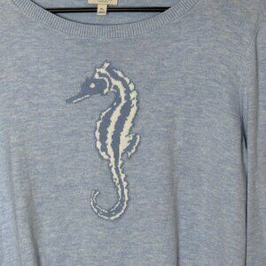 Talbots Scoop Neck Baby Blue 3/4 Sleeve Cotton Blend Seahorse Graphic Sweater MP