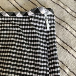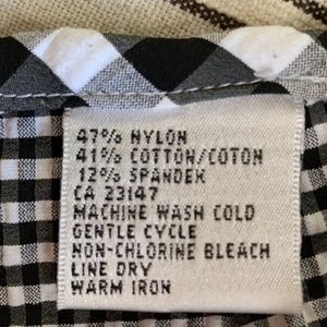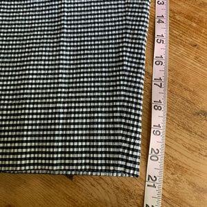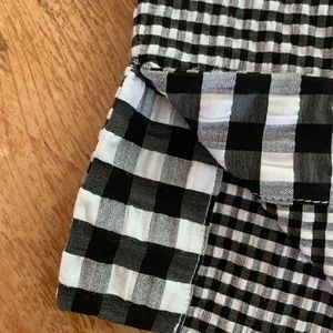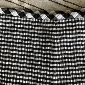 Small Black/White Check with Larger Black White Check used for narrow waistline and trim at hemline slit