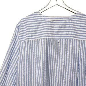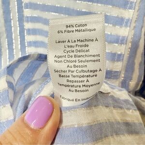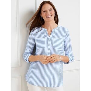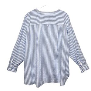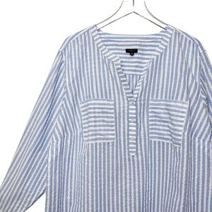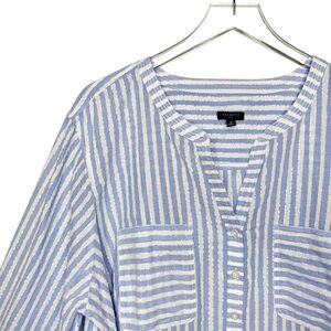 Talbots Seersucker Blue Stripe Metallic Lurex Side Button Women’s Tunic Sz 3X