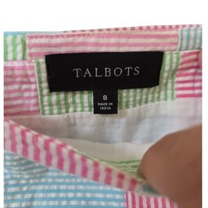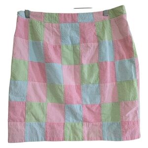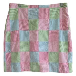 Talbots Seersucker Canvas Patchwork Stripe Skirt Size 8 Madras Summer Pastels