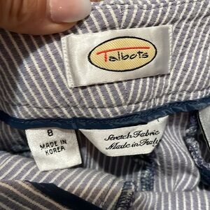 Talbots Seersucker Stretch Straight Leg Trousers Light blue White Size 8 Striped