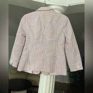 Talbots Seersucker stripe Patchwork Blazer women. Color Rd, white, Blue