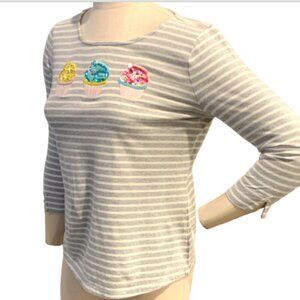 Talbots Sequin Cupcakes Striped Top Sz 2P Gray #96J