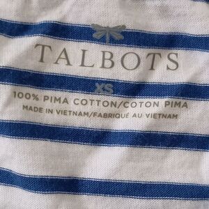 Talbots Sequin Lemon T Shirt XS Top Blue White Striped Tee Pima Cotton Nautical. Condition is pre-owned with no rips, tears, holes or discolorations. Lemon embellished with sequins. All Pima cotton. PLEASE SEE MEASUREMENTS!!