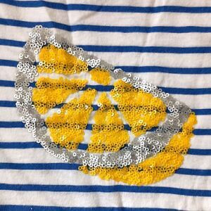 Talbots Sequin Lemon T Shirt XS Top Blue White Striped Tee Pima Cotton Nautical.