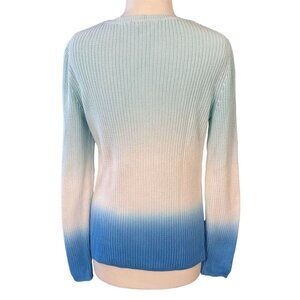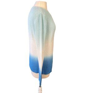 Talbots Shaker Stitch Blue Ombre Dip Dye Pullover Cotton Sweater Ladies Large
